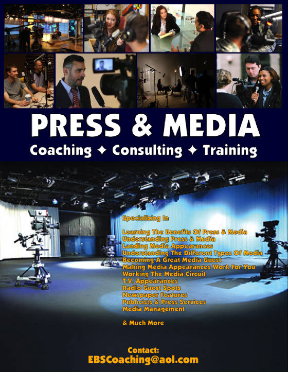 and executing Press & Media coverage for entertainers, agents, and promoters. Understanding the media, how it works, a breakdown of the various types of media, social media, media language and formats, understanding and creating effective and results-driven press releases, creating and maintaining media contacts, media time tables, becoming a good media guest, optimizing media appearances for maximum benefits and profits, media for merchandise and product sales, understanding the different types of media appearances, and much more. Generating great media coverage can create thousands of dollars in exposure and promotion, create brand awareness and positioning. Also, over 25 ways to use and benefit from the media. Ideal for entertainers, agencies, promoters, and touring productions. Personal Coaching/Training Small-Group (six or less)